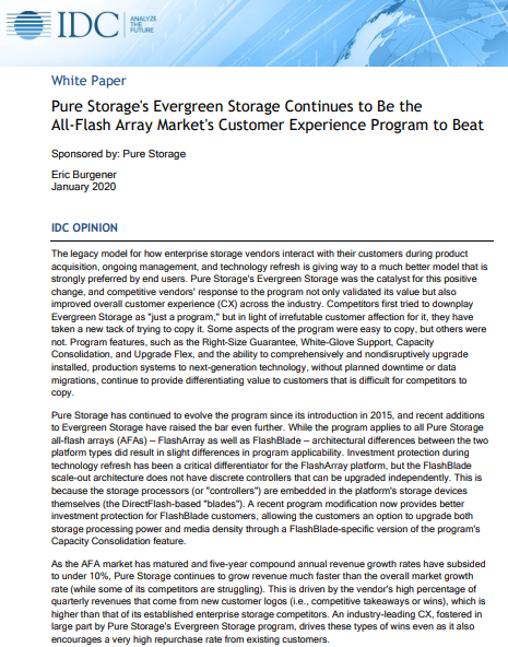 This White Paper assesses the impact Evergreen Storage has had on the enterprise storage industry and discusses the technical, financial, and business implications of the program, which was again expanded in late 2019, from a customer point of view.